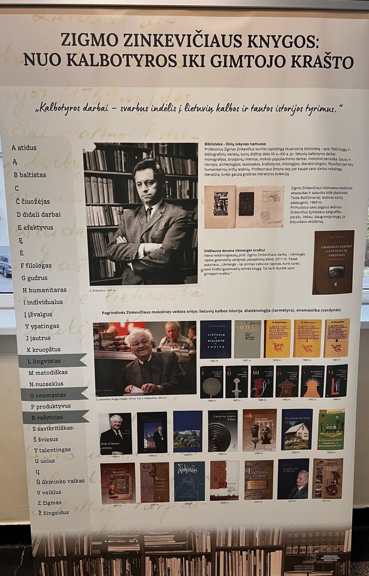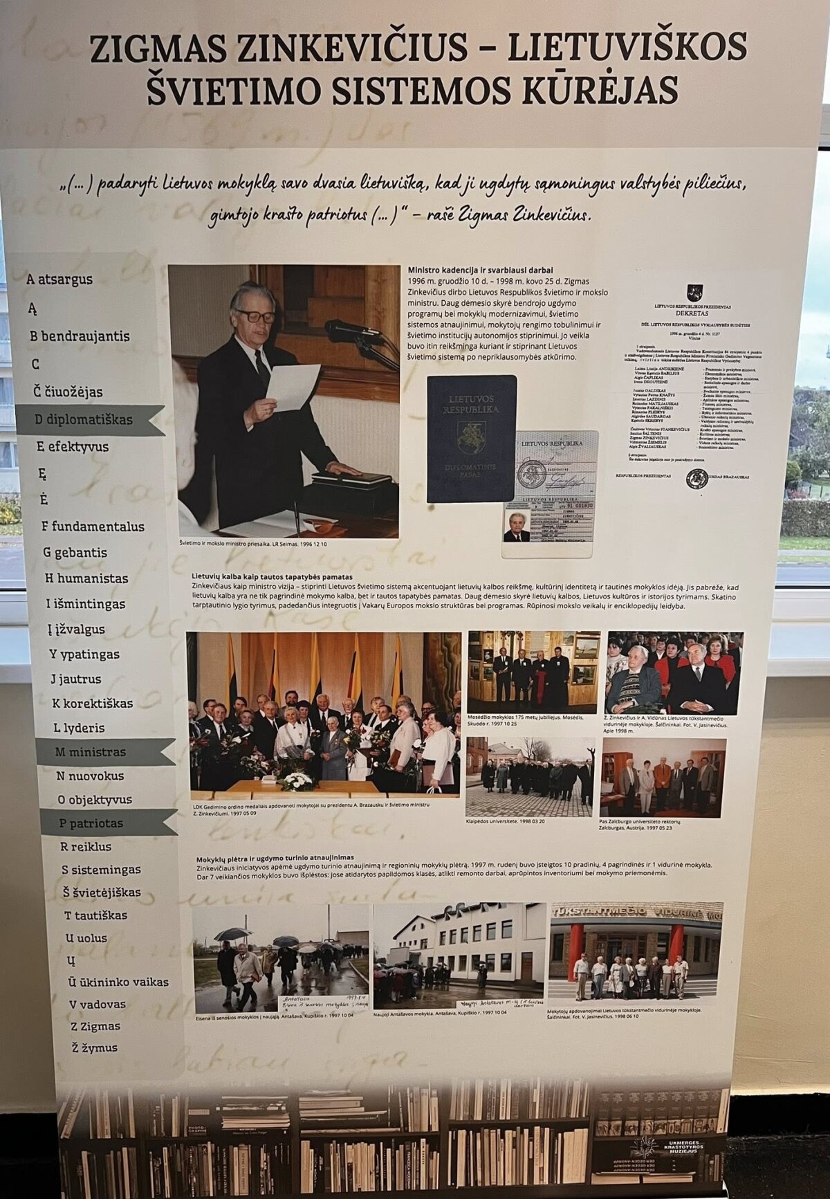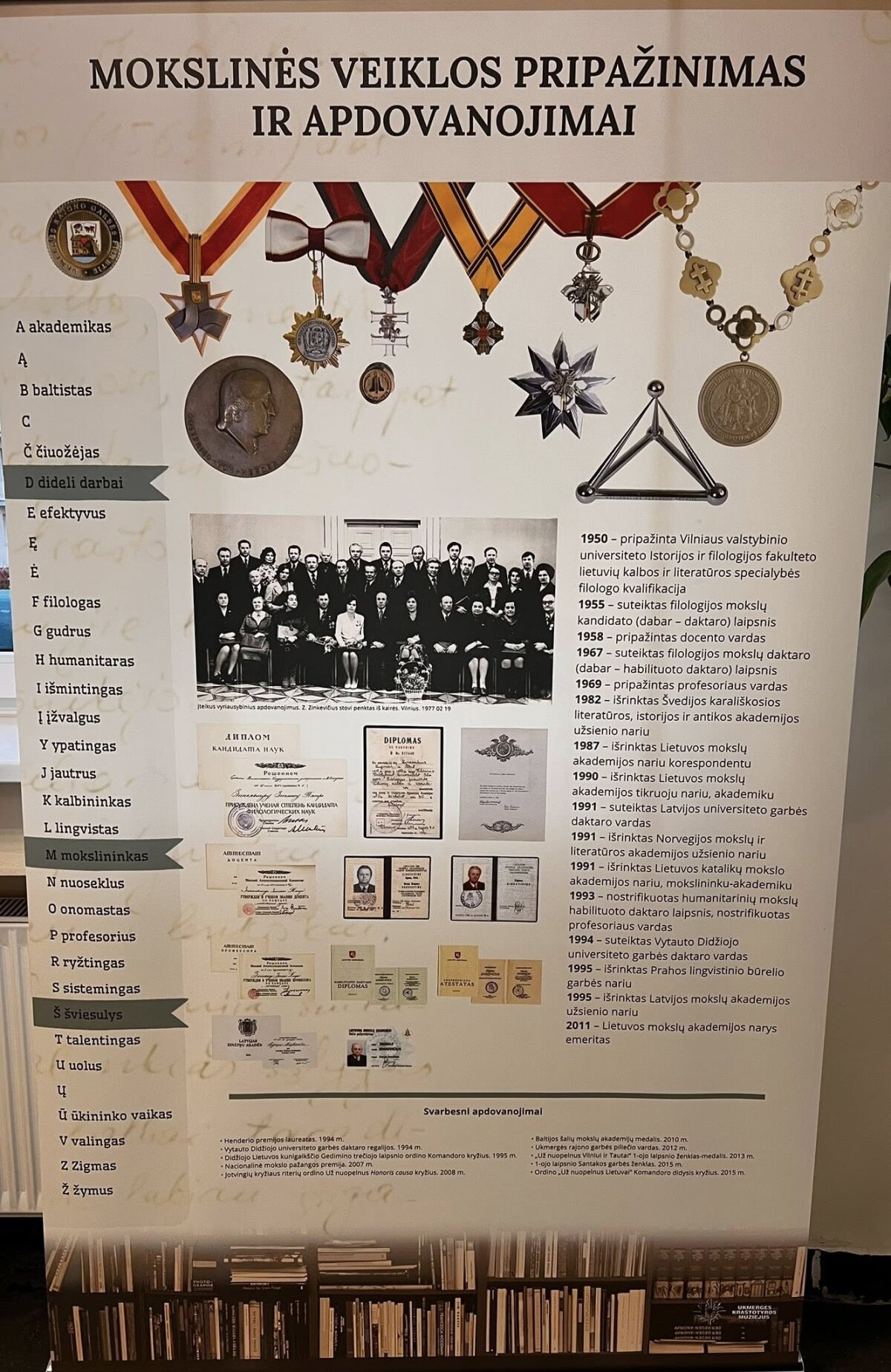 Iš parodos informacinio stendo: 1939–1945 m. Zinkevičius mokėsi Ukmergės Antano Smetonos gimnazijoje, kurią baigė aukso medaliu. Kadangi gerai mokėsi, tėvams mokėti už mokslą nereikėjo.