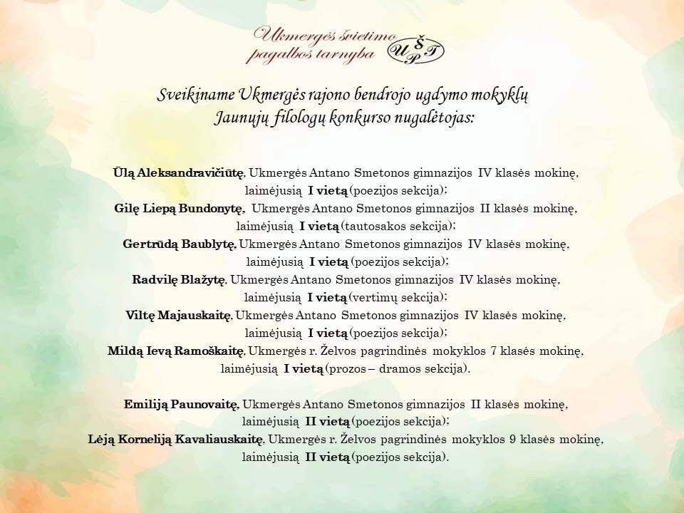 Sveikiname Jaunųjų filologų konkurso nugalėtojas ir jų mokytojas Zitą Markauskienę ir Audronę Mockienę