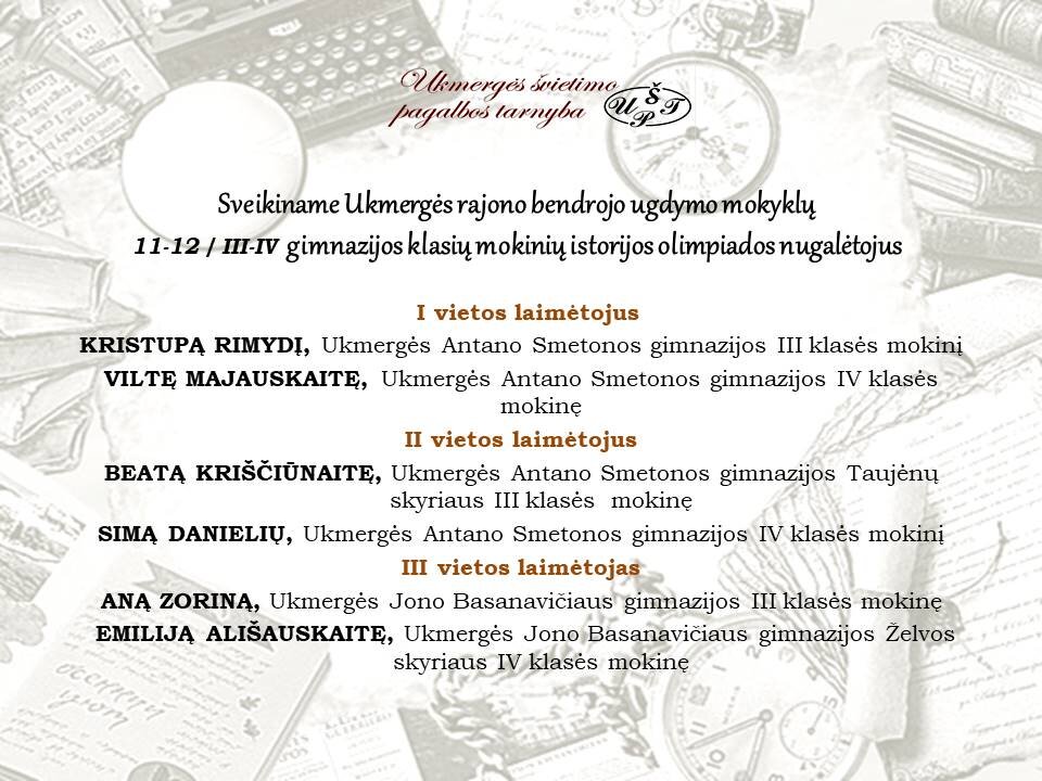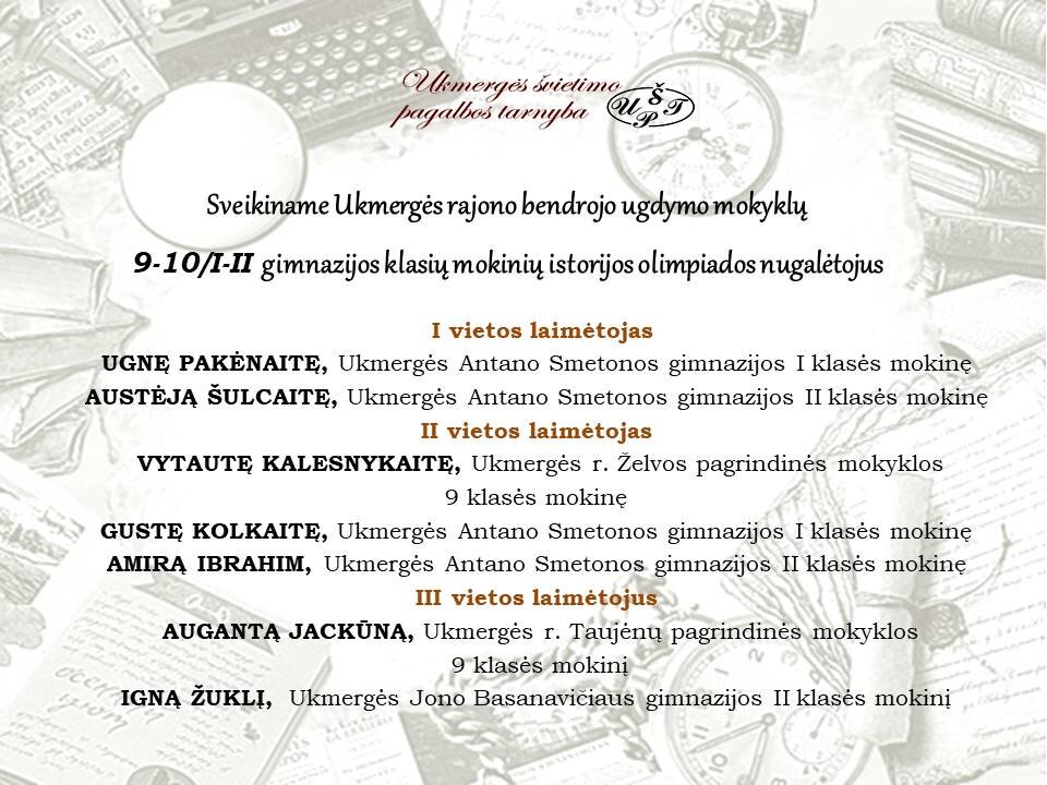 Sveikiname rajono istorijos olimpiados nugalėtojus: