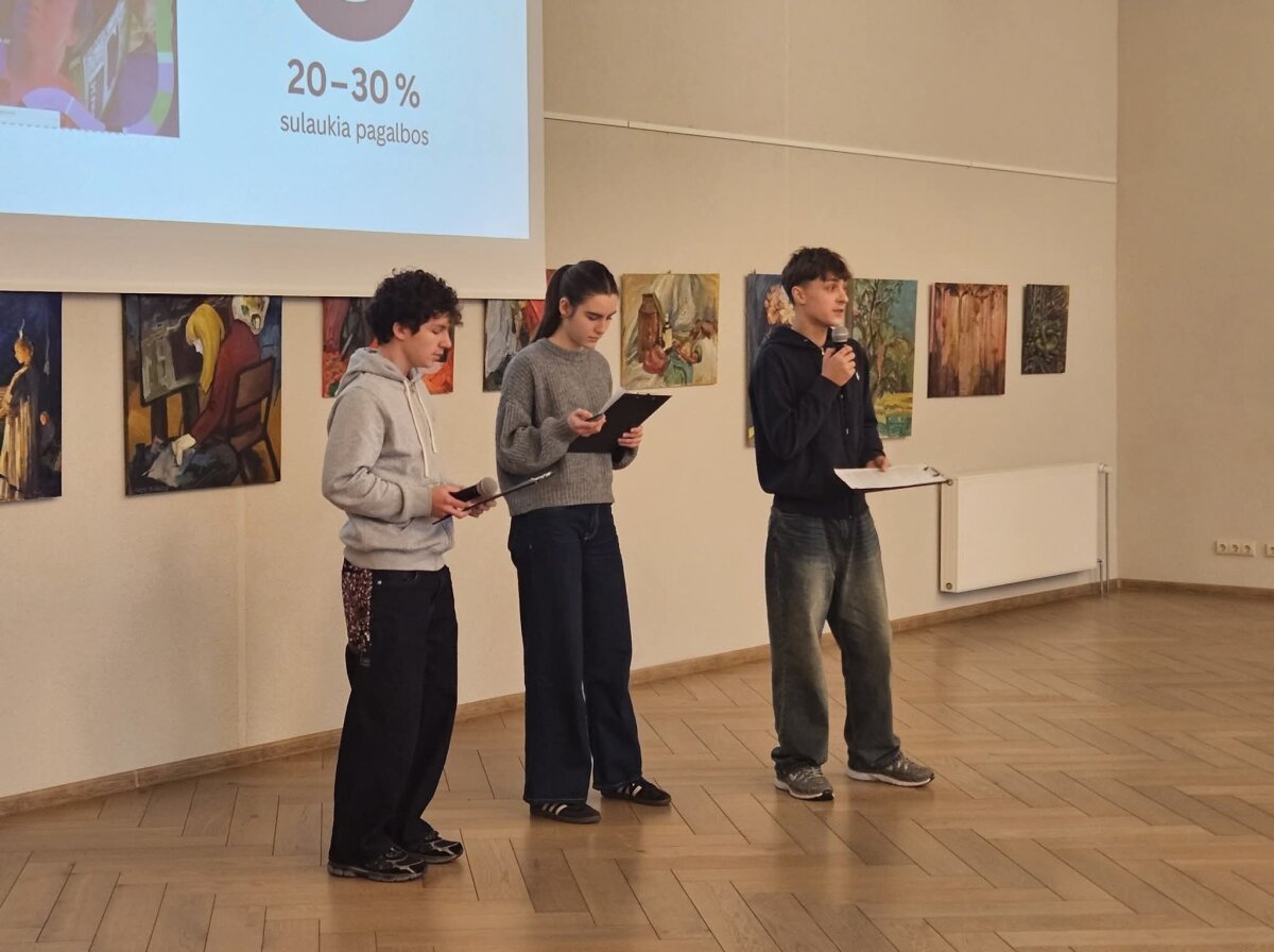 Nariai: IId kl. mokinys Dovydas Kizys, IIc kl. mokinė Sofija Armanavičiūtė ir IVc kl. mokinys Dominykas Uselis (mokytoja Justina Požerskienė).