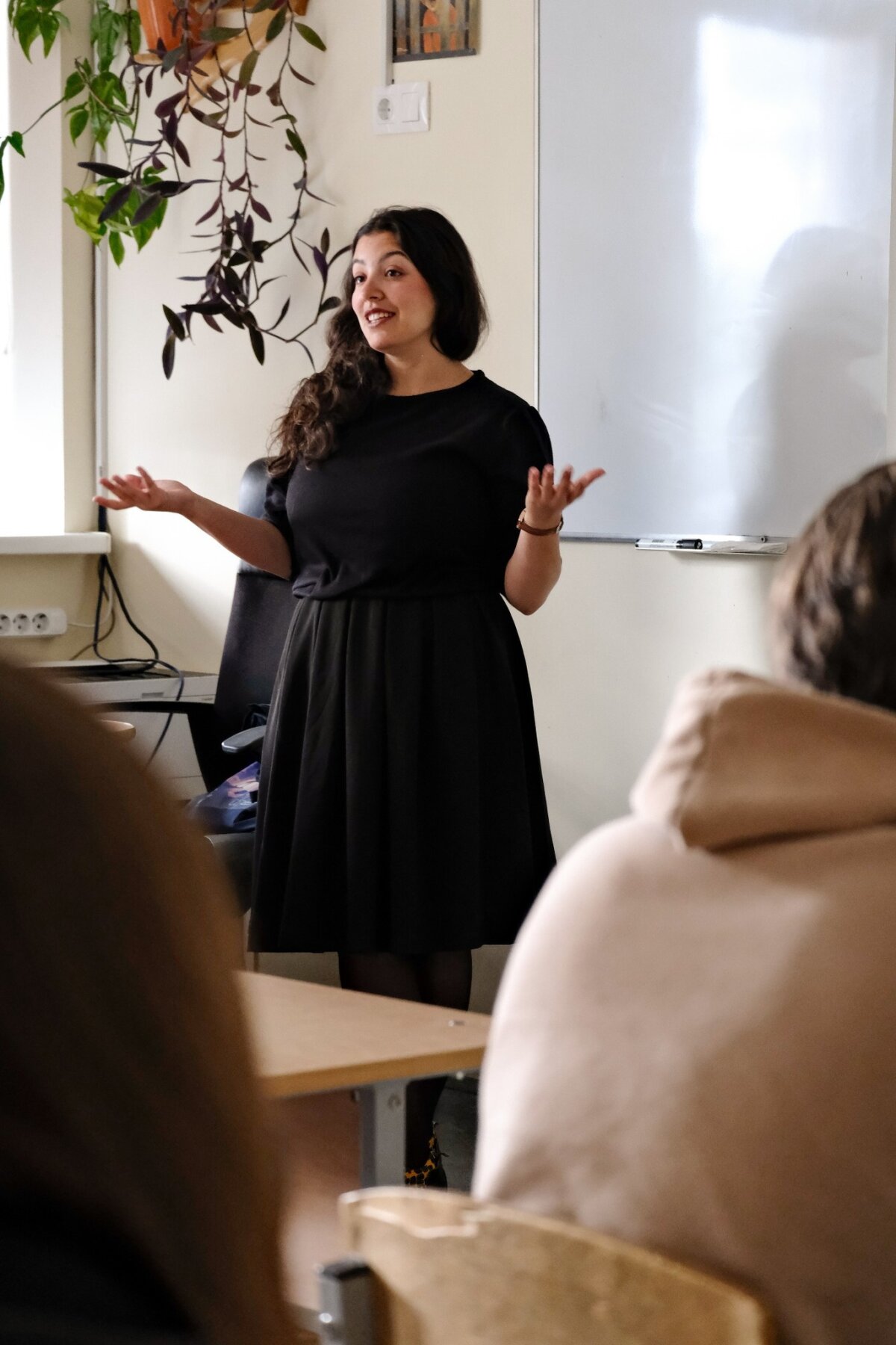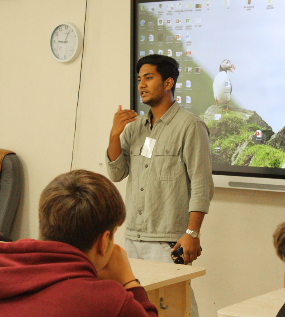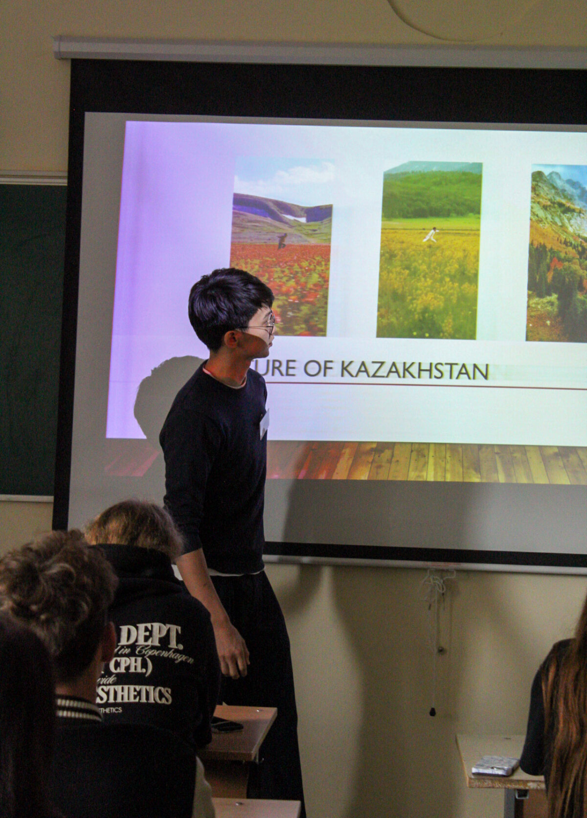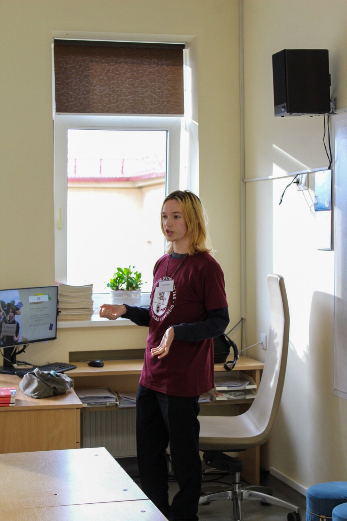 Dieną pradėjome pažintimi su Mikalojumi Konstantinu Čiurlioniu bei jo kūryba, mokiniai dalyvavo miniatiūrų rašymo užsiėmimuose. Vėliau III–IV klasių gimnazistai kalbėjosi apie kalbą, literatūrą, kultūrą su VU lietuvių filologijos studentu, reperiu Pijumi Vasiliausku, o I–II klasių mokiniai bendravo su Vytauto Didžiojo universiteto ir Vilniaus universiteto studentais. Apie savo šalį, kultūrą ir patirtis Lietuvoje mokiniams anglų kalba pasakojo Islam iš Kazachstano, Edoardo iš Italijos, Ameni iš Tuniso, Tanvi iš Indijos, Murad ir Nigar iš Azerbaidžano, Syed Musab Shamim iš Pakistano bei Yaroslav Kostiuk iš Ukrainos.