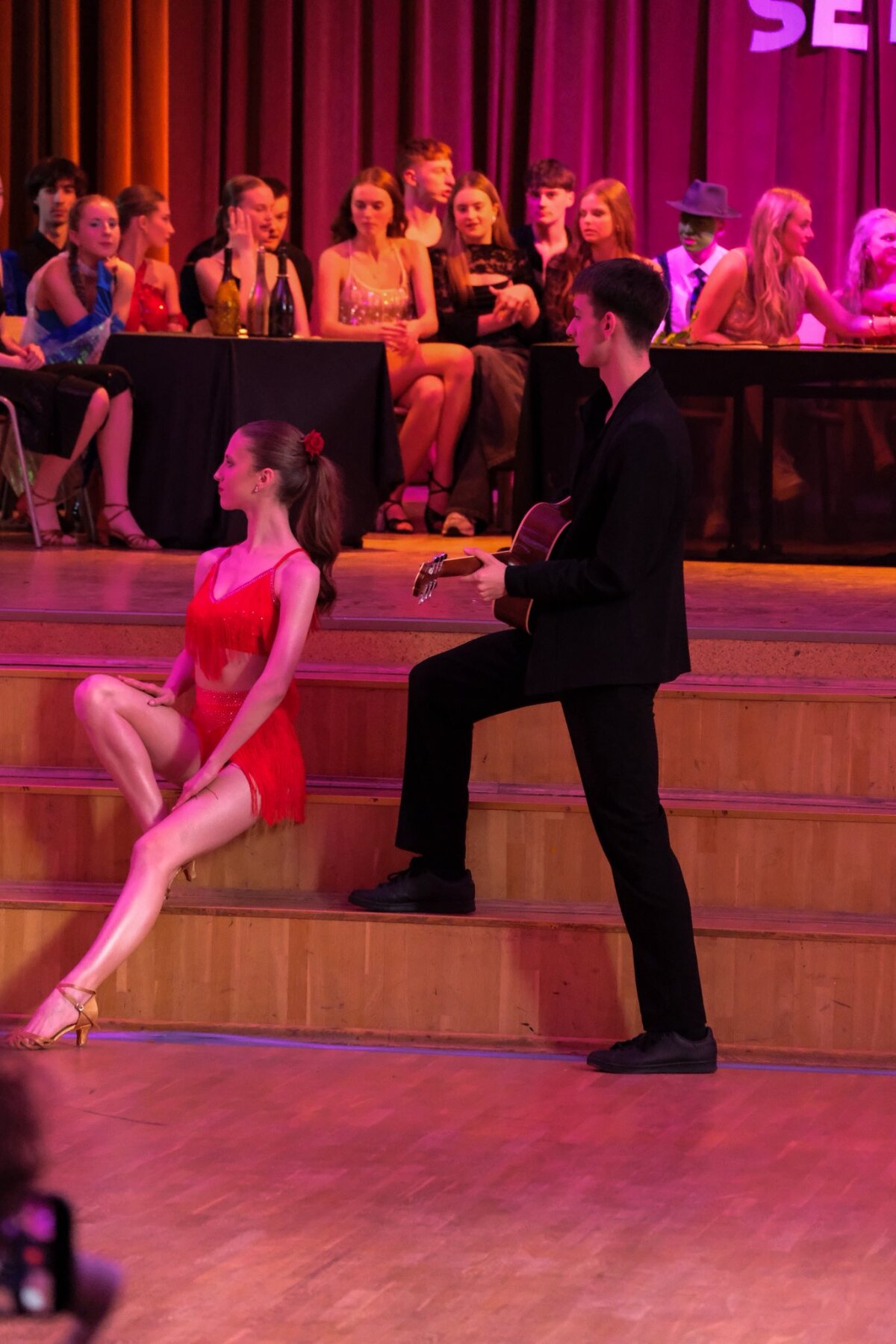 Šį įspūdingą renginį organizuoja šokių mokytoja Lina Nefienė, o pramoginius šokius šoka tiek abiturientai, tiek pirmokai. Šiemet šokių pasirodymus publikai dovanojo: Dorotėja Suslavičiūtė ir Astijus Folmer, Gabrielė Činikaitė ir Edvardas Kazokas, Gabrielė Kotryna Žukauskaitė ir Sidas Markauskas, Ema Grikšaitė ir Markas Miliūnas, Emilė Sedleckaitė ir Nojus Šereiva, Luknė Petraškaitė ir Mykolas Bražėnas, Vytautė Monkevičiūtė ir Raigardas Našlėnas, Karolina Emilija Žukauskaitė ir Gustas Vaitkevičius, Kamilė Petrauskaitė ir Domantas Jakimavičius, Ainė Žemaitytė ir Dovydas Radzys, Ugnė Stankevičiūtė ir Ignas Zinkevičius, Meida Kostikaitė ir Džiugas Strumeckas, Barbora Morkūnaitė ir Gustas Sedleckas, kurie tapo publikos numylėtiniais bei Ugnė Girdenytė ir Domas Karpavičius - jie paskelbti vakaro karaliumi ir karaliene.