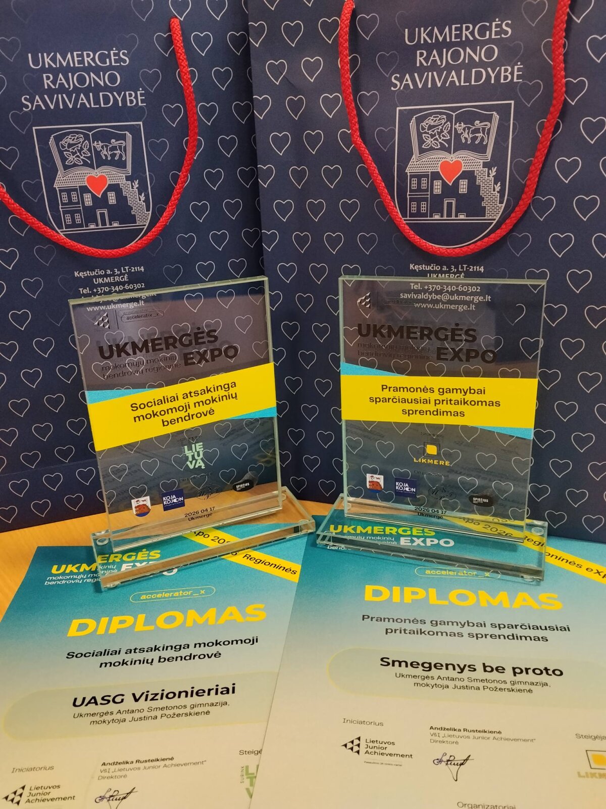 Balandžio 17 dieną Ukmergės PC „Eifelis“ vyko mokomųjų mokinių bendrovių regioninė „eXpo 2026“. Joje dalyvavo net penkios gimnazijos MMB – ir visos buvo įvertintos vardiniais apdovanojimais, o viena komanda pelnė ir I vietą!